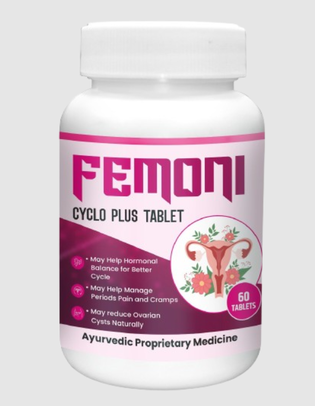 Regularity of the menstrual cycle is very important in women's health. Many women suffer from problems such as irregular periods, excessive pain, heavy bleeding or late menstruation. These problems can be caused by stress, lack of food, hormonal changes, or lifestyle. In this case, Femoni Cyclo Plus Tablets is a natural and Ayurvedic option that helps in balancing the menstrual cycle.